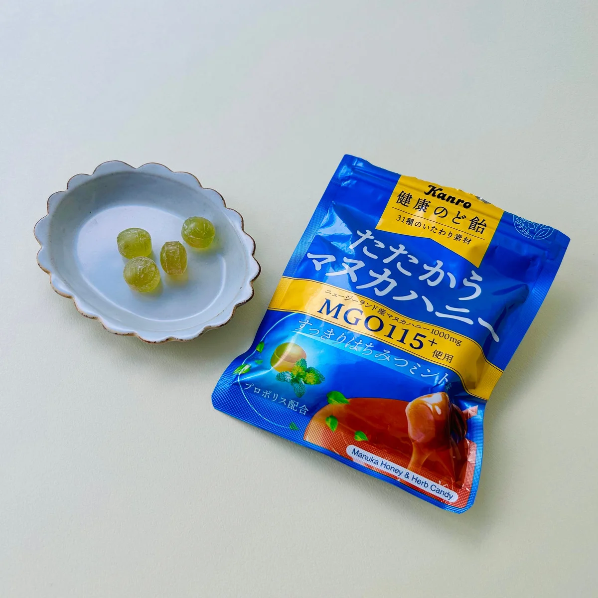 友人にもひと粒あげようと思い袋を見せると「いかつい飴だね!!」と驚かれがちですが、味はそんなことありません。酸味と苦味がリフレッシュにちょうどいいのです。